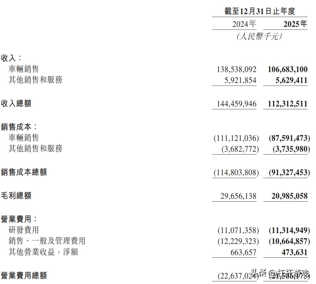 其中核心的车辆销售收入1066.83亿元,同比下滑23.0%,成为营收下滑的核心拖累,直接诱因是新车交付量的萎缩。