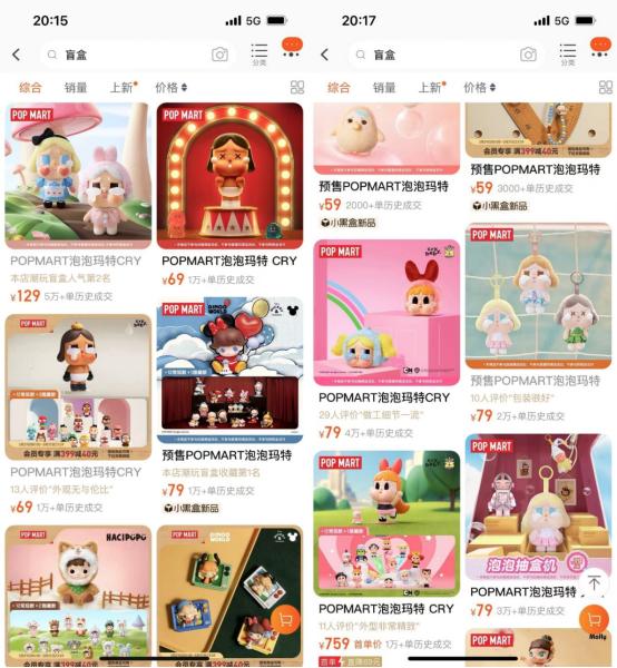 回看泡泡玛特的这一轮低潮期,有内外两重原因。一则,同行竞品的崛起,让盲盒趋向同质化,当盲盒的新鲜感开始褪去,消费者的复购率也随之下降。