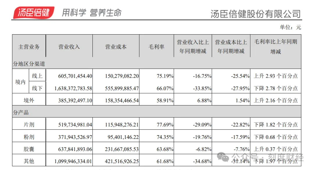 2024年,汤臣倍健线下渠道实现收入34.18亿元,同比降幅高达29.79%。2025年第一季度,汤臣倍健线下渠道收入降至9.88亿元,同比下降42.62%。