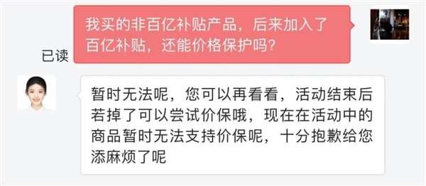但最过分的是,如果你购买了非百亿补贴产品,后来又加入了百亿补贴,京东同样不支持价格保护!