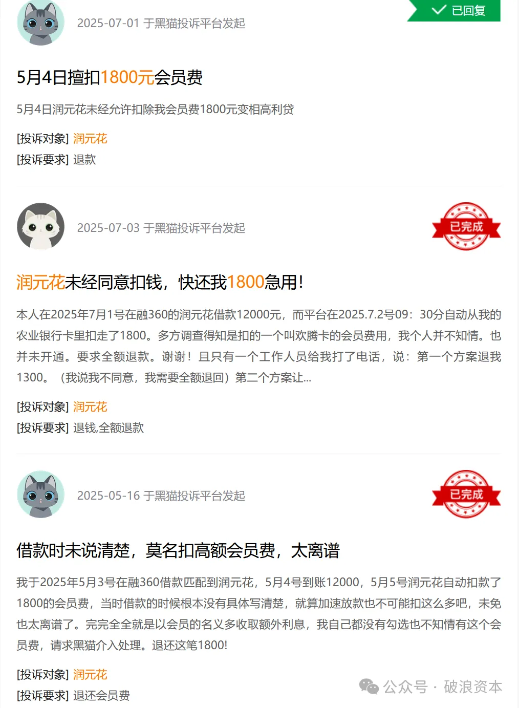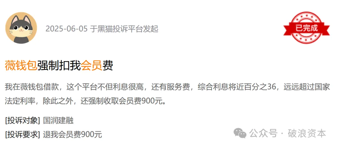 值得注意的是,薇钱包曾于2025年2月将页面最高利率从36%下调至24%,试图规避监管,但破浪资本发现,直至2025年6月,仍有用户反映其综合利息接近36%,违规高息并未真正整改。