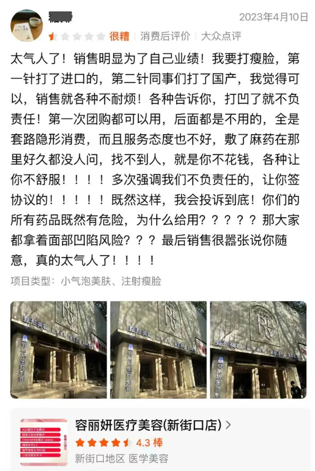 这些负面评价并非个例,也不是偶发事件,而是呈现出一定的普遍性和持续性。从开业至今,类似的投诉和差评就从未间断过,这不仅严重影响了南京容丽妍的口碑,也让越来越多的消费者对其望而却步。