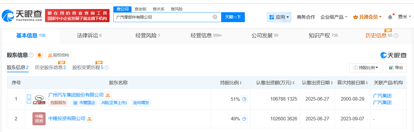 该公司成立于2000年8月,法定代表人为龚翰清,经营范围包括汽车零部件及配件制造、摩托车零部件及配件制造、汽车零配件批发、摩托车零配件批发、汽车零配件零售、企业自有资金投资等,由广汽集团(601238)、中隆投资有限公司分别持股51%、49%。