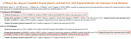 3月11日,二手消费电子产品交易和服务平台万物新生(曾用名“爱回收”)发布2025财年第四季度和全年业绩报告。