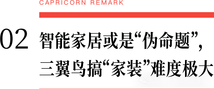 然而,我们在现实家居和家装市场看到的却是:一方面,三翼鸟的家居智能仅仅停留在公司及其产品的“宣传页”,离真正的“智慧家”相去甚远;另一方面,在家装领域,由于缺少核心竞争力,三翼鸟也难以承载海尔由家电向家装转型的战略目标。