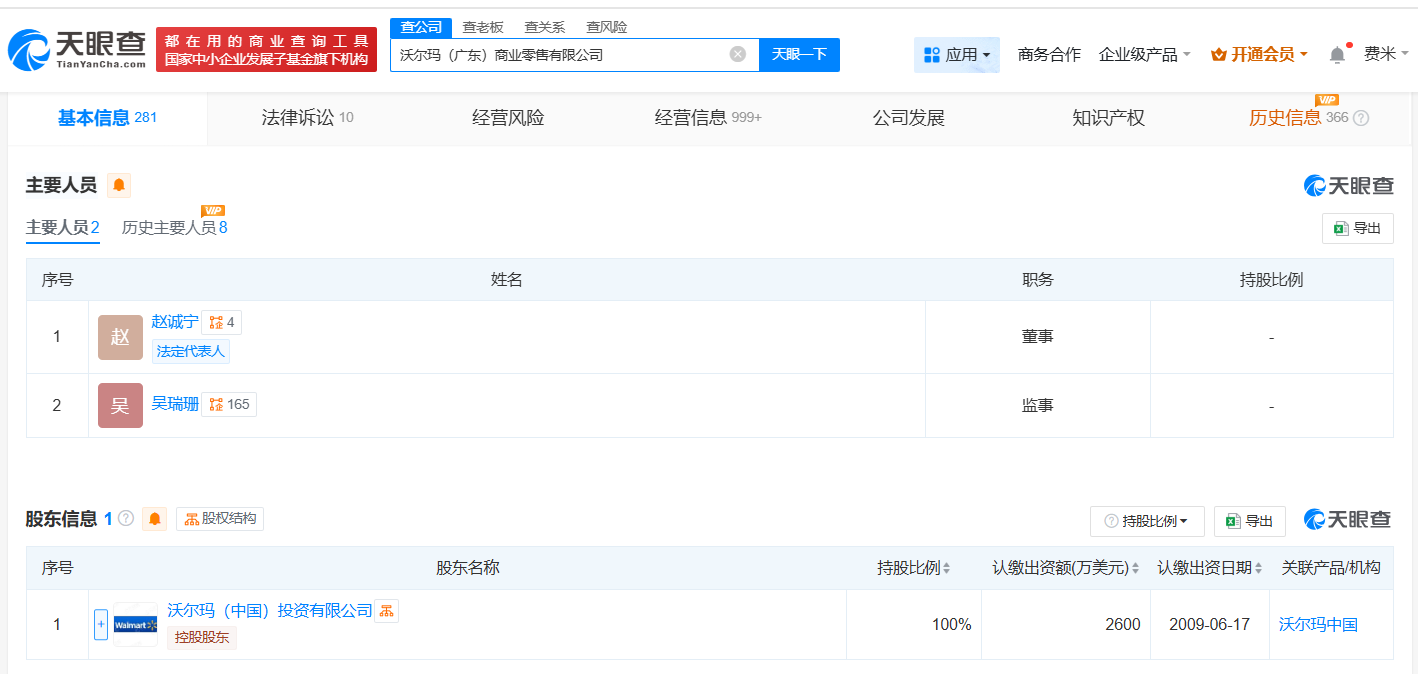 天眼查App显示,近日,沃尔玛(广东)商业零售有限公司发生工商变更,Andrew Peter Miles卸任法定代表人、执行董事,赵诚宁接任法定代表人并担任董事。