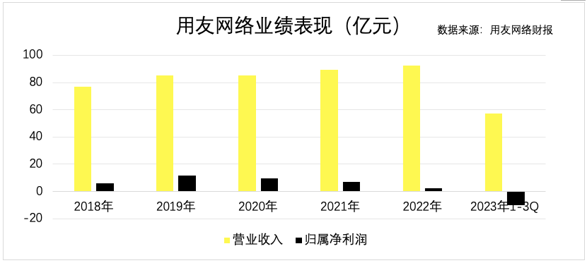种种因素使然,王文京重回一线后并没有使用友网络的报表有多大的改观,反而是“王小二过年——一年不如一年”:2021年其归属净利润大幅下滑28.18%至7.08 亿元,2022年继续大幅下滑69.03%至2.2亿元;2023年前三季度,用友网络归属净利润直接由盈转亏,巨亏超10.3亿元,大概率出现自2001年上市以来的首个年度亏损。