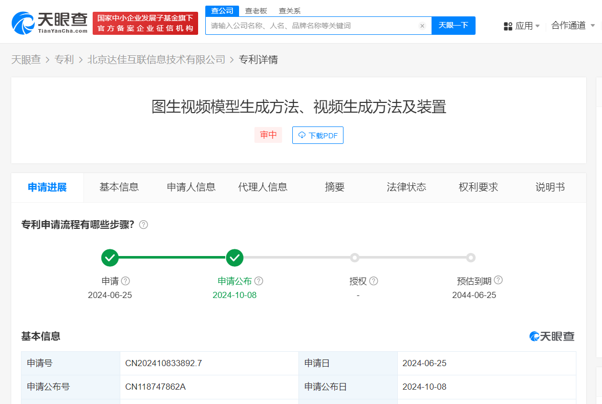 天眼查知识产权信息显示,近期,快手关联公司北京达佳互联信息技术有限公司申请的“图生视频模型生成方法、视频生成方法及装置”专利公布。