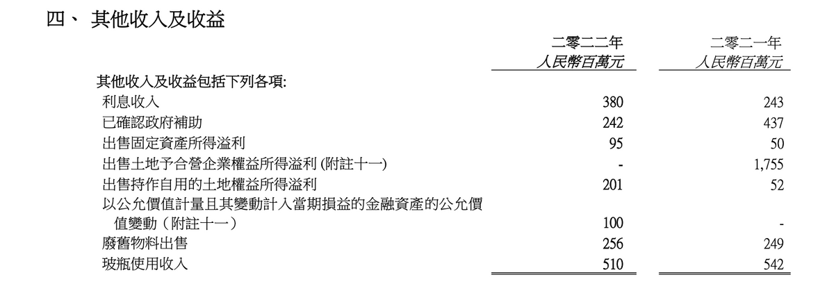 财报显示,包括利息收入、政府补助、出售固定资产所得以及出售土地所得等项目。