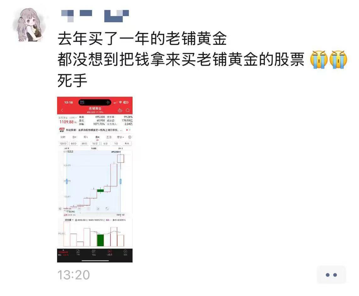 老铺黄金的股价也迎来了惊人的上涨。2025年2月14日,老铺黄金的股价达到了493港元/股,相比去年6月的40.5港元/股,已经飙升超过1117.2%。市值跃升至833.03亿港元,成为港股市场的“十倍股”。就连朋友圈都有人感叹光顾着买黄金首饰,后悔没上车。