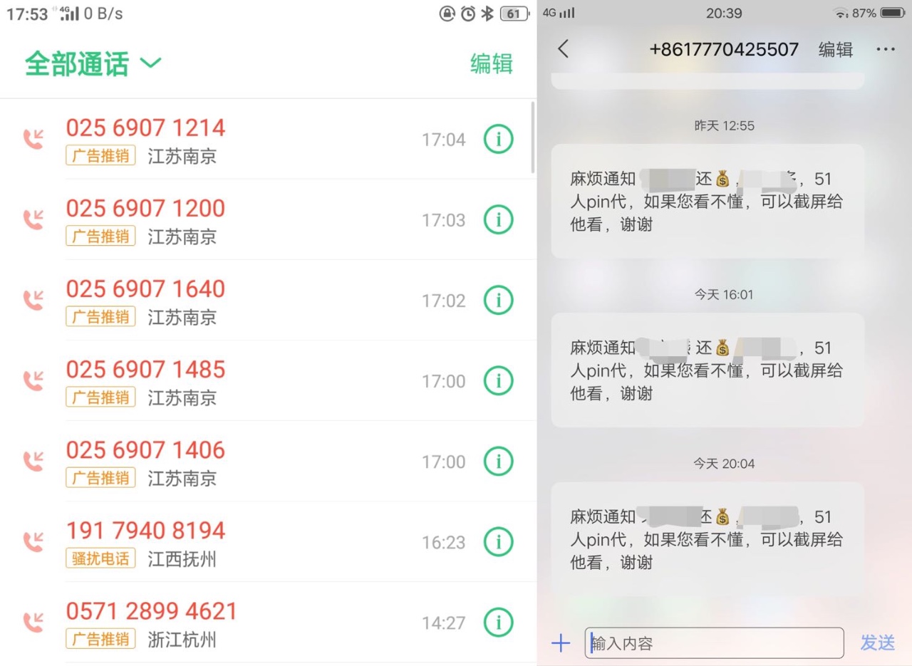 而更有用户反映,51人品贷的催收非法获取借贷人网购收货地址,联系电话,发微信恐吓等。