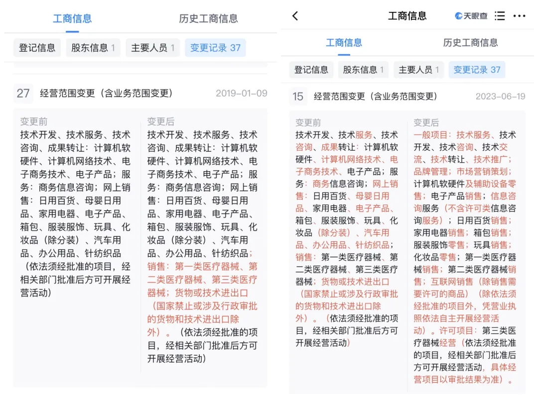 距离这一大限仅剩三个多月,市场关注度急剧升温。不过,截至2025年12月21日,还没有极萌已取得第三类医疗器械注册证的市场信息。但天眼查显示,极萌的运营主体极萌(浙江)品牌管理有限公司的经营范围变更曾在2019年1月9日新增“销售第三类医疗器械”;2023年6月19日又新增“许可项目:第三类医疗器械经营(依法须经批准的项目,经相关部门批准后方可开展经营活动,具体经营项目以审批结果为准)”等条目。