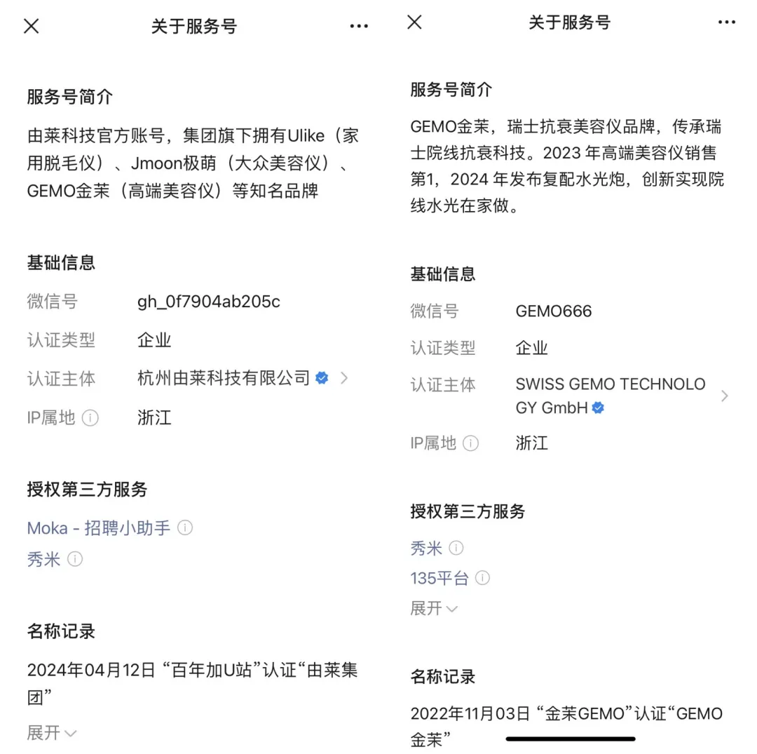 值得关注的是,2024年12月,无冕财经发布《巩俐代言的GEMO美容仪,又一个“假洋牌”?》一文曾详细调查高端家用美容仪品牌金茉(GEMO)的瑞士背景,发现其在瑞士并不生产美容仪,且与由莱科技有着千丝万缕的关联。