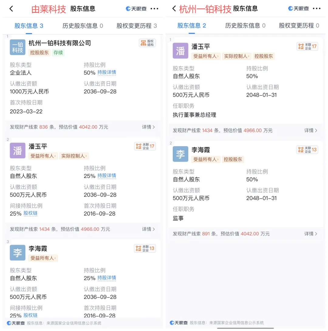 但事实上,天眼查显示,Ulike的运营主体由莱科技成立于2016年,是一家以从事零售业为主的企业,注册资本2000万元,法定代表人为陈玉祥,股东为杭州一铂科技有限公司、潘玉平和李海霞,分别持股50%、25%及25%,实际控制人为潘玉平,而潘玉平和李海霞又分别持有杭州一铂科技有限公司各50%的股权。这也就意味着,由莱科技无任何韩国资本背景。