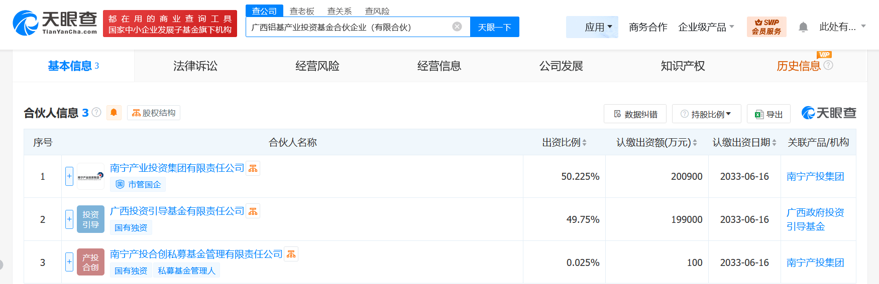 天眼查App显示,近日,广西铝基产业投资基金合伙企业(有限合伙)成立,执行事务合伙人为南宁产投合创私募基金管理有限责任公司,出资额40亿人民币,经营范围为创业投资,以自有资金从事投资活动,以私募基金从事股权投资、投资管理、资产管理等活动。合伙人信息显示,该基金由南宁产业投资集团有限责任公司、广西投资引导基金有限责任公司、南宁产投合创私募基金管理有限责任公司共同出资。