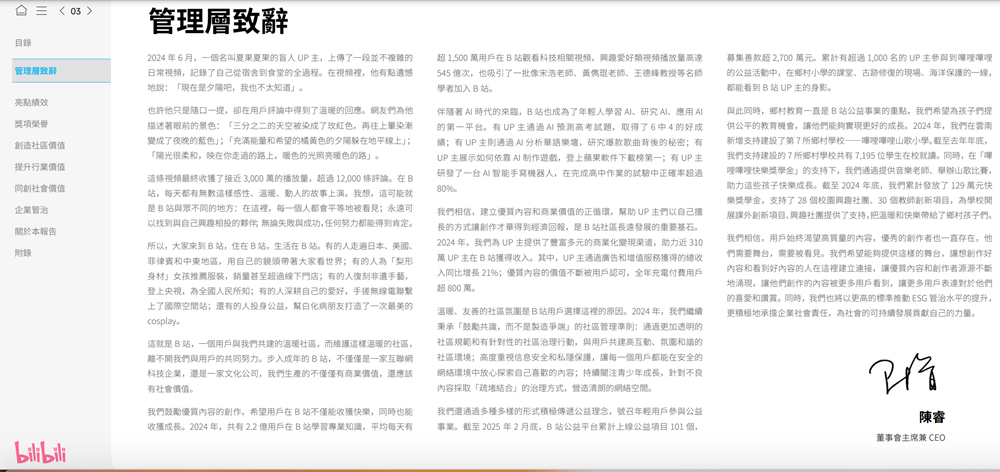 【TechWeb】4月10日消息,昨日晚间,B站在港交所发布《2024年环境、社会及管治报告》。报告显示,2024年有近310万UP主在B站获得收入,其中UP主通过广告和增值服务获得的总收入同比增长21%。