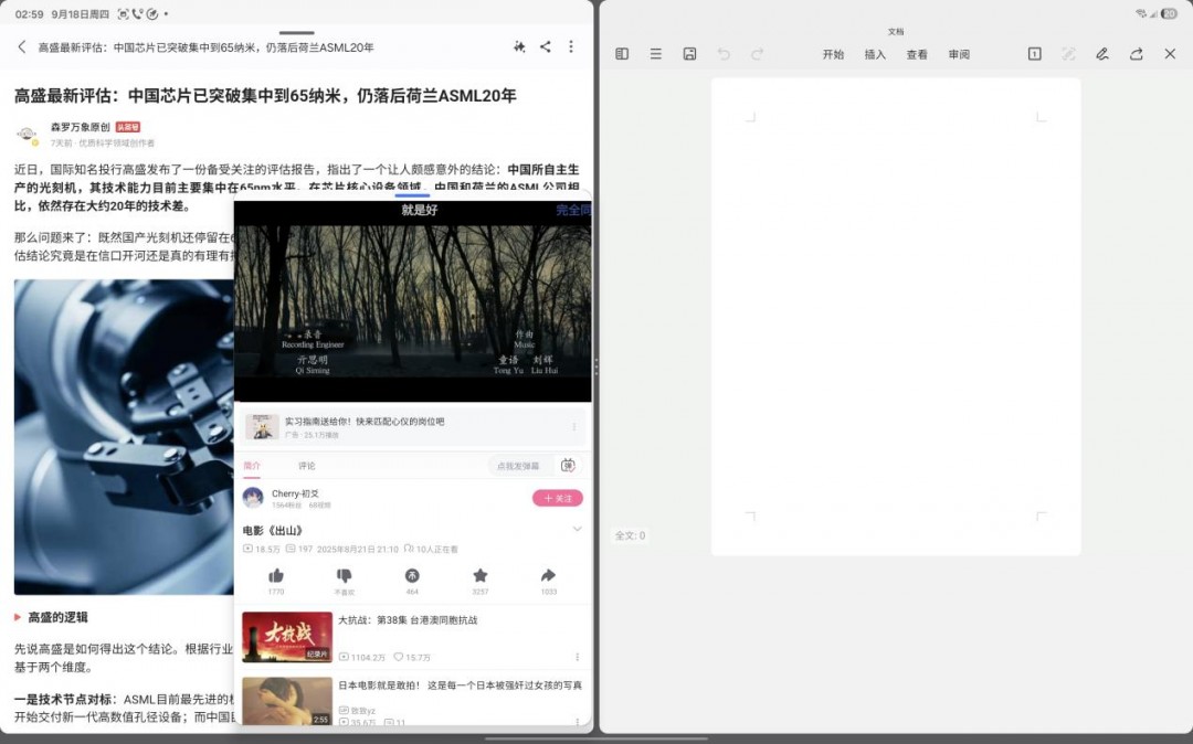 它针对14.6英寸的大屏幕优化了分屏逻辑,三指上滑就能呼出多任务栏,然后我就可以轻松地进行分屏操作了。而且,它还支持“一拖三”的分屏布局,比如我在写一篇文章的时候,就可以一边打开微信和同事沟通,一边打开文档进行编辑,还能同时打开网页查找资料,三个应用程序同时运行,互不干扰,效率真的是大大提高了。