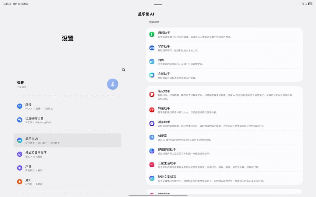 至于系统层面,三星Galaxy Tab S11 Ultra搭载的One UI 8系统,真的是在大屏适配方面下足了功夫,每一个细节都处理得特别好,用起来特别顺手。
