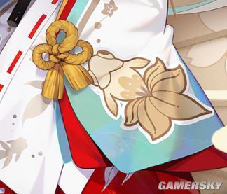 却见少年模样的源博雅拿出一只木刻的金鱼,金鱼,绯红流穗静垂 龙胆花篆印成冠 印刻巫女之证 木刻金鱼佩于胸前 是哥哥幼年时所赠的礼物 仿佛能感应到其中沉沉的思念 龙胆花沿镶边 金鱼纹饰印绘 振袖由金穗点缀 小小身影持伞端立 澄目相视。