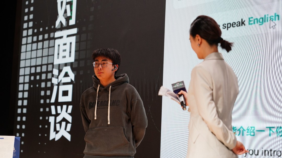 在接下来的面对面翻译场景,双方补充展示自身优势时,“AI智能队”进一步展现了其优势。现场主持人邀请观众亲身体验时空壶W4 Pro AI同传耳机,感受行业首个拥有双向同传功能的强大,一台耳机即可实时方便地实现高效、顺畅的翻译需求,完美适配长时间的商务洽谈、学术交流等广泛应用场景。