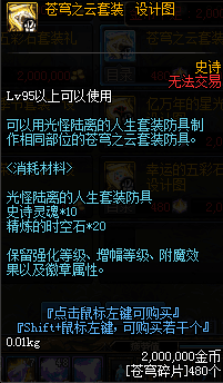 直接制作途径:直接制作的话,每件要比升级多使用120个苍穹碎片。但是节约了狗眼和精炼的时空石。全部升级需要213次,约36周,门票1768W,共需4000W。单件成本是360W。