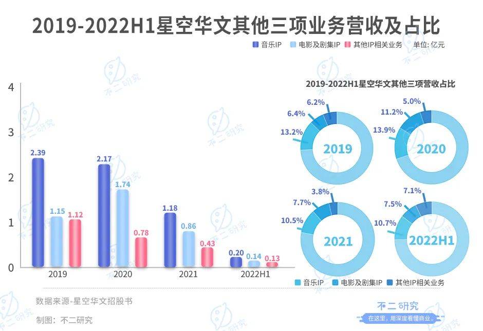 其他IP相关业务2019-2022上半年营收分别为1.12亿、0.78亿、0.43亿和0.13亿;分别占总营收的6.2%、5.0%、3.8%和7.1%。