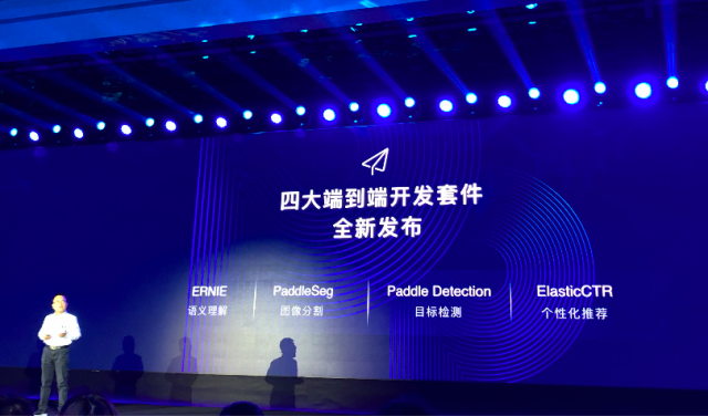 此次飞桨全新发布4大面向应用任务的产业级开发套件,实现四大应用任务的全流程开发、训练和部署,更加方便实现应用落地。包括:NLP领域的ERNIE语义理解,CV方向的PaddleDetection目标检测和PaddleSeg图像分割,推荐方向的ElasticCTR点击率预估,降低开发门槛,满足低成本和快速集成需求。