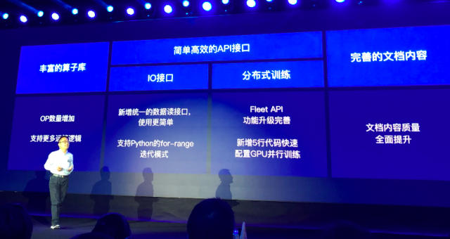 现场,百度还面向深度学习开发者推出了重磅福利——飞桨生态激励计划,免费开放10个AI课程体系、面向100余所重点高校提供深度学习教学支持培训、助力1000余家AI企业转型智能化、设立100万元AI系列比赛奖金、提供1亿元的GPU算力资源支持。