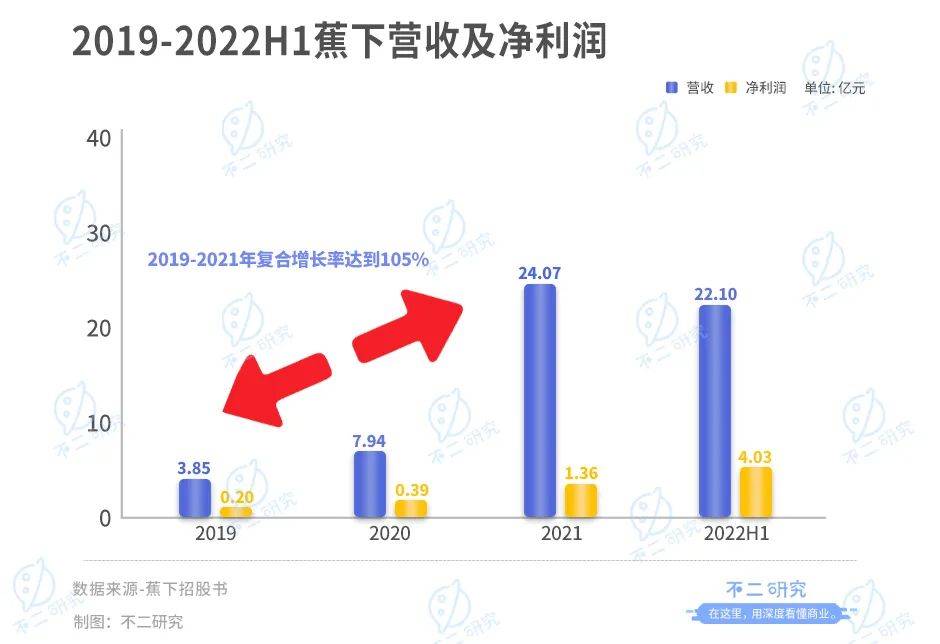 「不二研究」据其招股书发现:2022上半年,蕉下营收22.10亿元,同比增加81.3%;同期,经调整后的净利润为4.03亿元,同比增加196.32%。