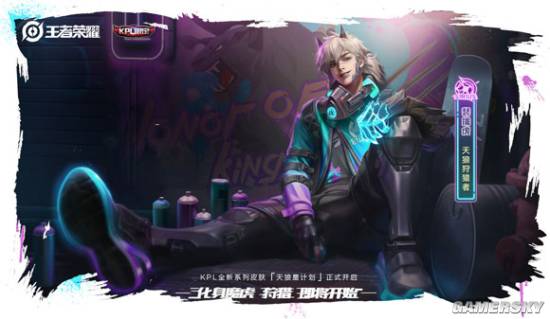 裴擒虎天狼狩猎者皮肤介绍 设计思路裴擒虎·天狼狩猎者是KPL新系列皮肤,技能展示◀人形态▶一技能 虎子向前方扔出一个喷漆瓶,召唤师们是不是回忆满满呢~新皮肤在展示背景和技能特效中加入了醒目的KPL图案。