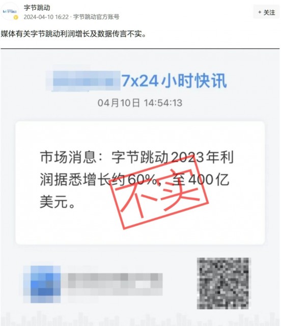 IT之家 4 月 10 日消息,字节跳动官方账号今日下午发表声明:媒体有关字节跳动利润增长及数据传言不实。
