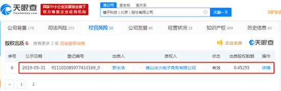 公开数据显示,质权人分别为深圳市天河星供应链有限公司、北京猎户星空科技有限公司、上海维服信息技术有限公司以及佛山冰火电子商务有限公司,其中猎户星空是猎豹移动旗下人工智能子公司,最大股东为傅盛。