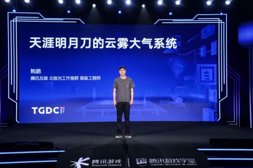 腾讯互娱北极光工作室群高级工程师鲍鹏介绍了《天涯明月刀》高效的云雾大气系统,该系统在整个时段和天气系统中可以统一整合进配置,方便美术制作、参数设置以及不同场景天气进行管理,大幅度提升画面质量与真实感的同时,游戏的帧率损失微乎其微。