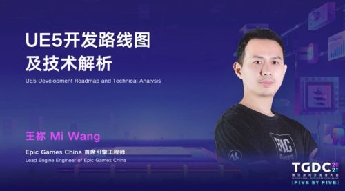 技术专场中,来自Epic Games China的首席引擎工程师王祢较为全面地介绍了虚幻引擎5的最新功能,并指出UE5开发的目标在于通过提高渲染品质拉高虚拟世界构建和表现的上限,提高开发和迭代的效率,并通过提供更多更丰富易用的工具,降低使用门槛等。