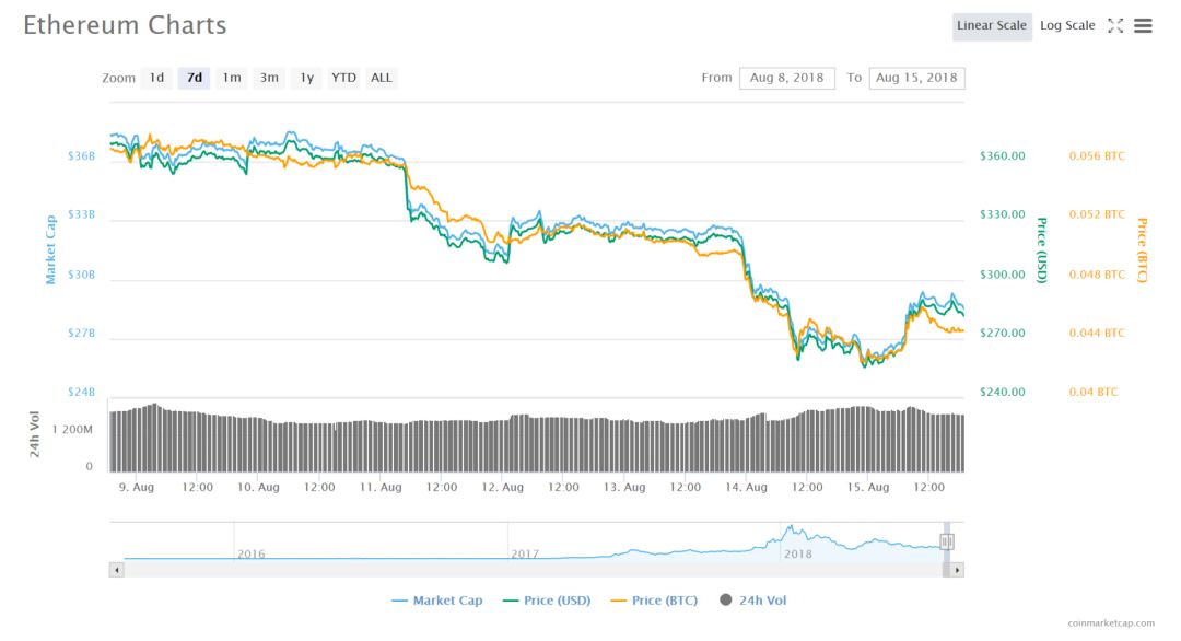 8月13日23:00至次日早上9:00,数字货币总市值缩水10%,从2130亿美元跌到1896亿美元,其中,以市值第二的ETH最为注目。不到12个小时,ETH价格跌幅达20%以上, 较今年最高点跌去近80%。