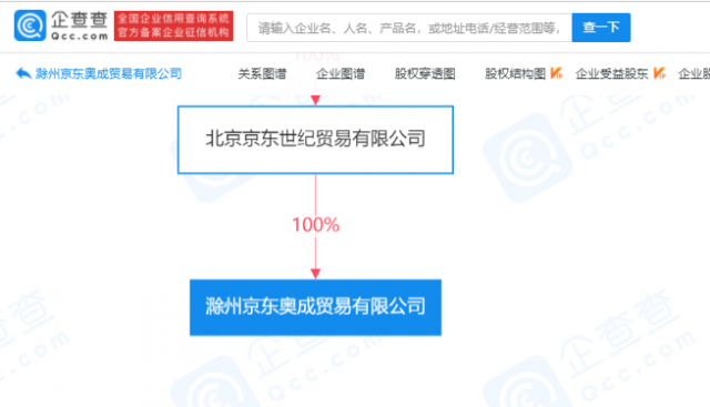 企查查股权穿透显示,该公司由北京京东世纪贸易有限公司全资持股。