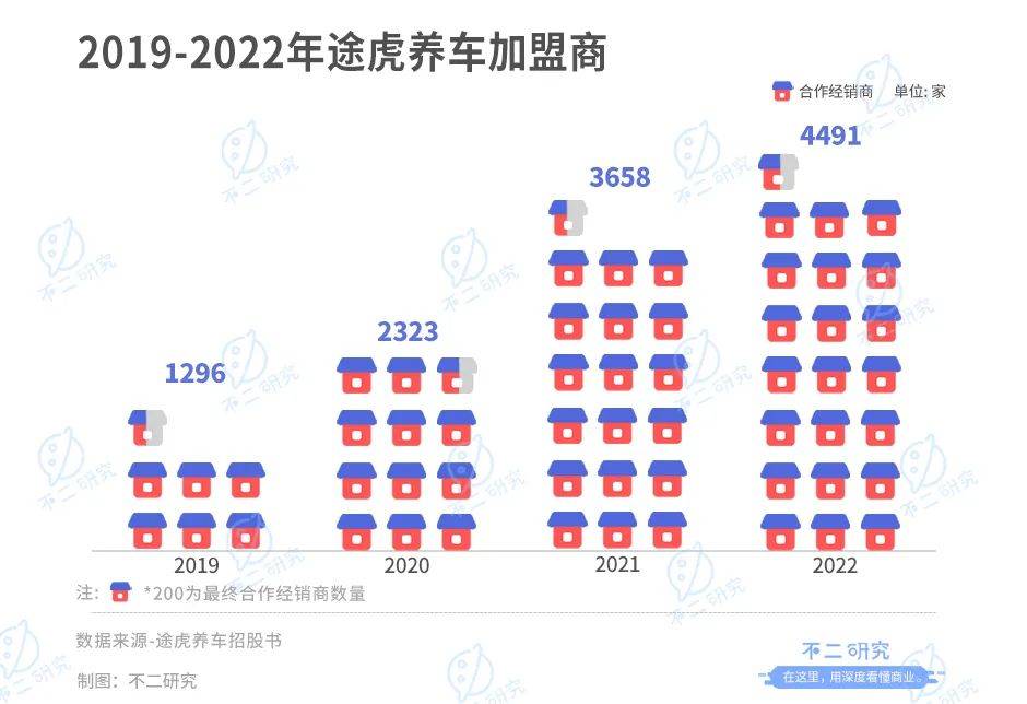 在汽车后市场,途虎搭建一个自营门店、加盟店及合作门店等的服务网络。截至2022年12月31日, 自营门店162家,加盟店4491家(由2278名加盟商管理),合作门店20870家。