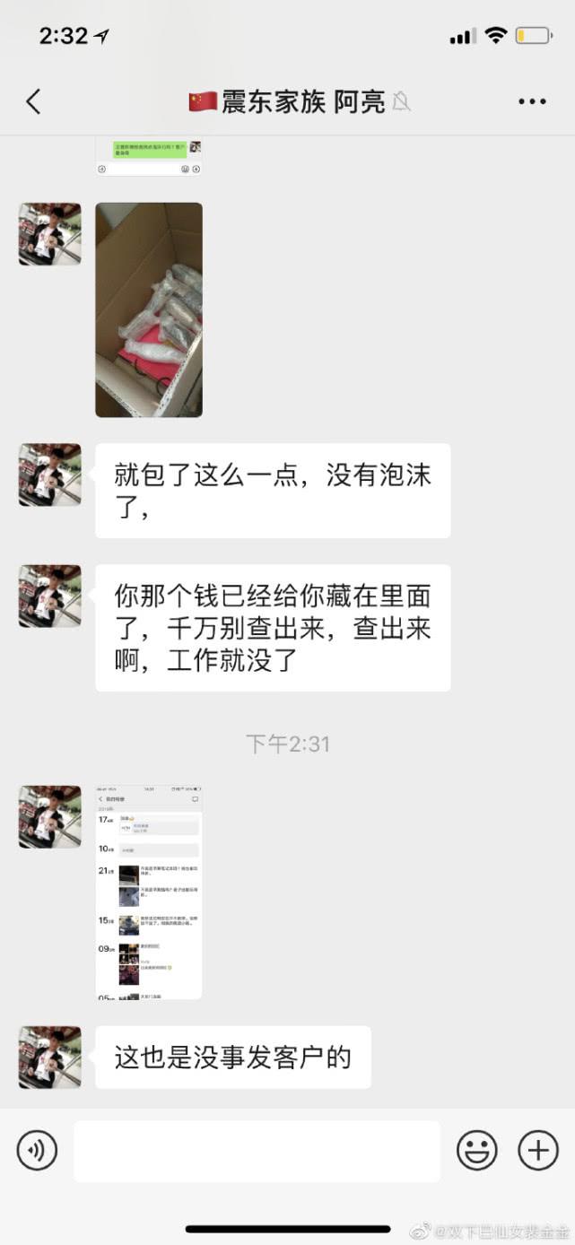 网友表示,最后快递员发来消息,他之前也用别的客户的东西发过朋友圈,觉得这种行为很正常,“用来装X而已。”