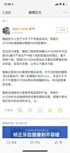 经过双方调查,魅族工程师现场确认XYZONE手中这部16s属于产线生产中极个别封胶漏点的情况,属于特例个案。而我们XYZONE更加关注事后消费者的相关权益,经双方协商,公布以下解决方案: