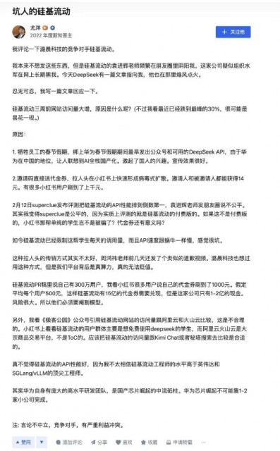 附1:潞晨科技创始人尤洋公开质疑硅基流动文字