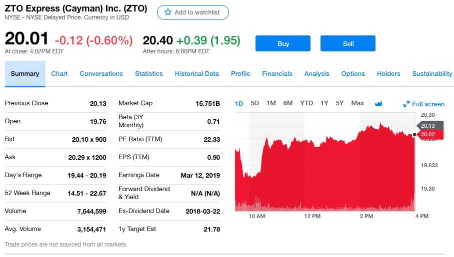 中通周二在纽交所的开盘价为19.76美元。截至周二收盘,中通股价下跌0.12美元,报收于20.01美元,跌幅为0.60%。截至美国东部时间周二18点(北京时间周三6点),中通股价在盘后交易中上涨0.39美元至20.40美元,涨幅为1.95%。过去52周,中通股价最高为22.67美元,最低为14.51美元。