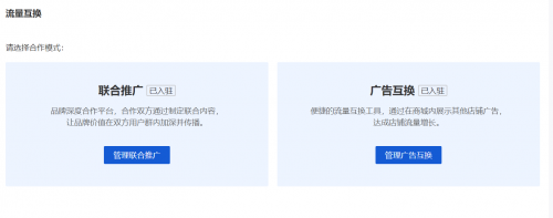 而「广告互换模式」是简单直接的跨店铺流量互换工具,应用于商城内的跨店广告投放。和“联合推广”不同,商家无需定向建联和重度运营,仅需要配置本店广告内容,以及店铺广告位,即可同时与多店铺进行广告互换,让本店广告在合作店铺内展示,实现便捷的流量互换。
