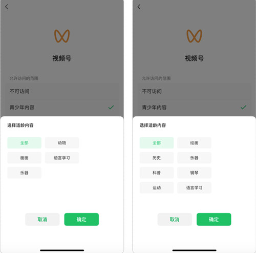 青少年模式下,家长可设置视频号不可访问,或者允许访问青少年内容。额外设置“出生年月”、“适龄内容”后,可定向获取更适合的内容推荐。