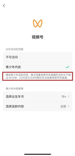 视频号新增内容分级设置功能 对青少年实行宵禁快讯