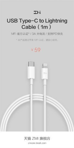 今日,小米生态链企业-紫米公司终于确定推出其支持MFi认证的USB-Cto Lightning闪电连接线,售价更是凸显小米价格屠夫的本质,仅售59元,极尽厚道。