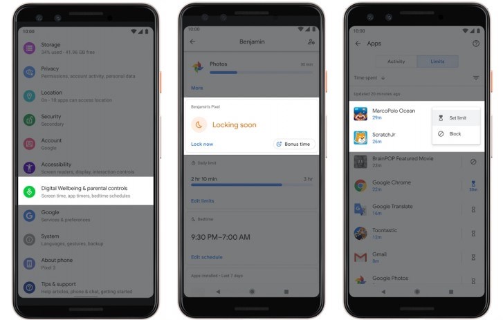 在Android Q中,你还可以设置特定应用的时间限制,并在睡觉前给孩子一个额外的手机使用期限。