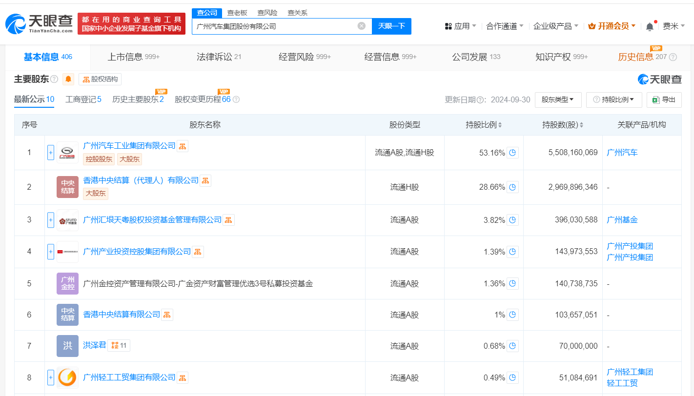 天眼查App显示,近日,广汽集团(601238)发生工商变更,曾庆洪卸任法定代表人、董事长,由冯兴亚接任,同时多位高管发生变更。