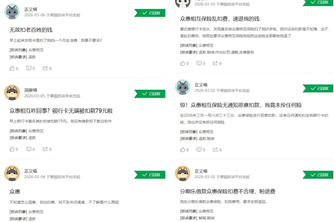 频遭投诉“无故扣费”,众惠相互保险高增的保费背后,藏着助贷生意经观点