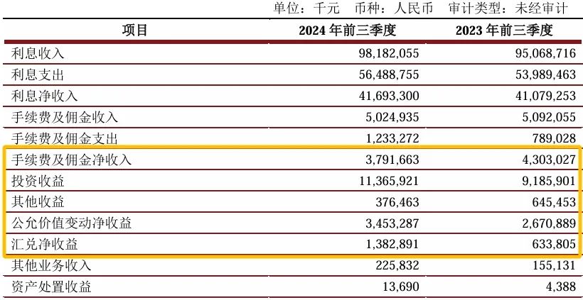 其中,投资收益113.66亿元,同比增长23.73%,占营业收入的18.24%;公允价值变动净收益34.53亿元,同比增长29.29%;汇兑净收益13.83亿元,同比增长118.19%;而手续费及佣金净收入37.92亿元,同比下降11.88%。