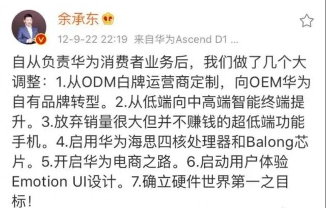 拿到“尚方宝剑”之后,余承东的风格变得更加疯狂,公开表示:“华为要在三年内超越苹果,五年内超越三星,把华为的手机做成世界第一”。